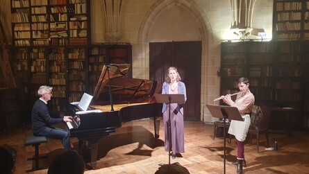 À cette occasion, une pièce de théatre improvisée sur les débats actuels ainsi qu'un concert étaient proposés par quelques membres du labo. Ce fut la belle bibliothèque de Royaumont qui donna le cadre du concert autour de l'œuvre de Jean Cartan et inspiré par les soirées musicales que Gilbert Gadoffre organisait jadis dans l'abbaye.