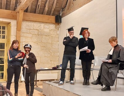 À cette occasion, une pièce de théatre improvisée sur les débats actuels ainsi qu'un concert étaient proposés par quelques membres du labo. Ce fut la belle bibliothèque de Royaumont qui donna le cadre du concert autour de l'œuvre de Jean Cartan et inspiré par les soirées musicales que Gilbert Gadoffre organisait jadis dans l'abbaye.